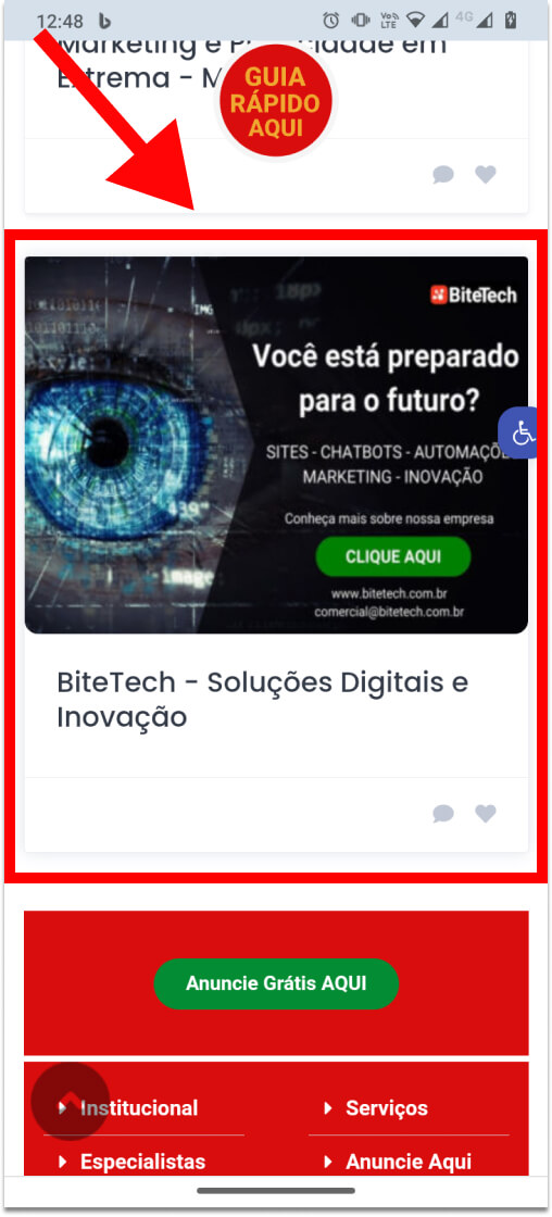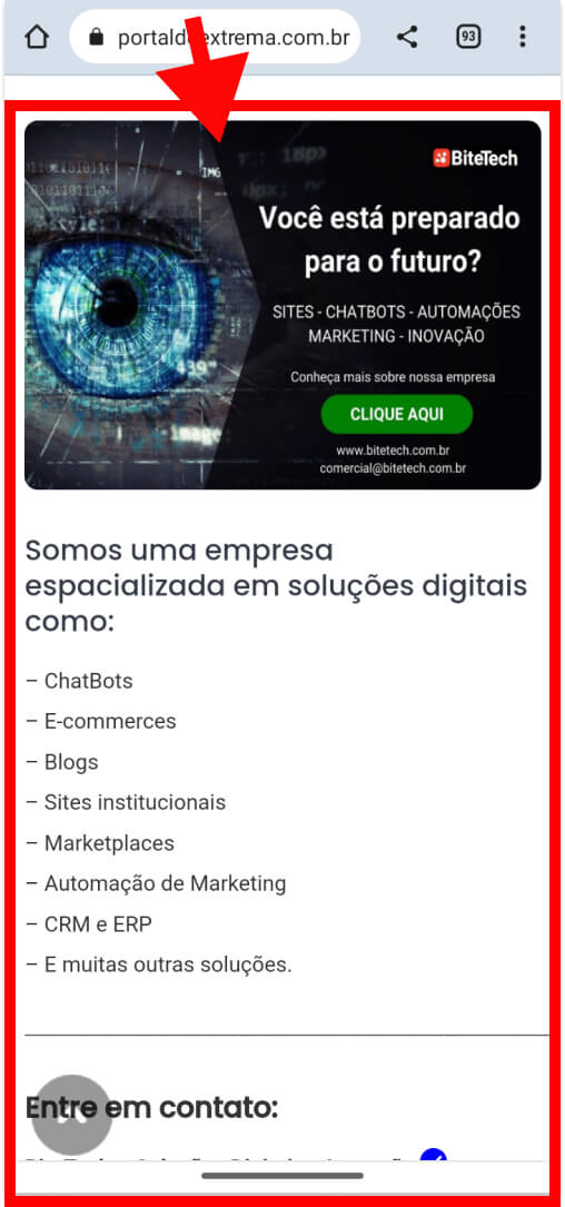 Anúncio em destaque na página Principal e na Página de conteúdos 👇